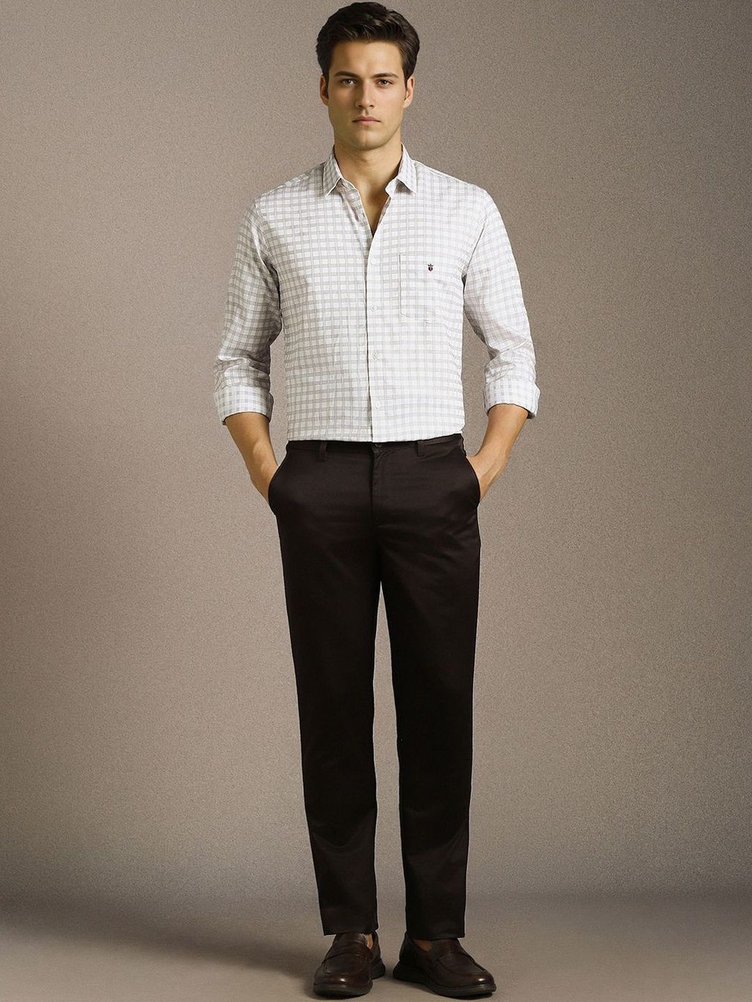 Outfits featuring Men Slim Fit Checked Casual Shirt